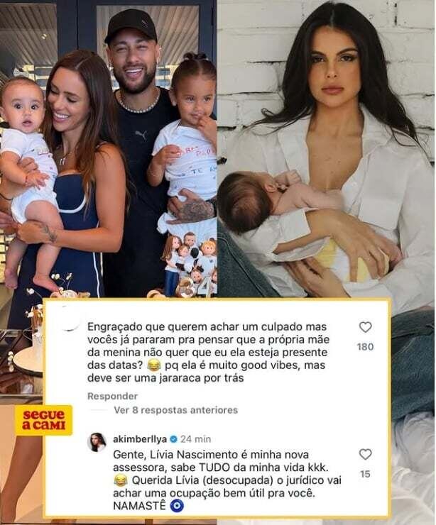 Muitos internautas comentaram sobre a ausência da filha de Amanda Kimberlly na festa de Neymar Jr. Diante da situação, Kimberlly decidiu falar sobre isso. Acontece que uma internauta chamada Lívia Nascimento disse: “Engraçado que querem achar um culpado, mas vocês já pararam pra pensar que a própria mãe da menina não quer que ela esteja presente nas datas?! Porque ela é muito ‘good vibes’, mas deve ser uma jar4raca por trás”.