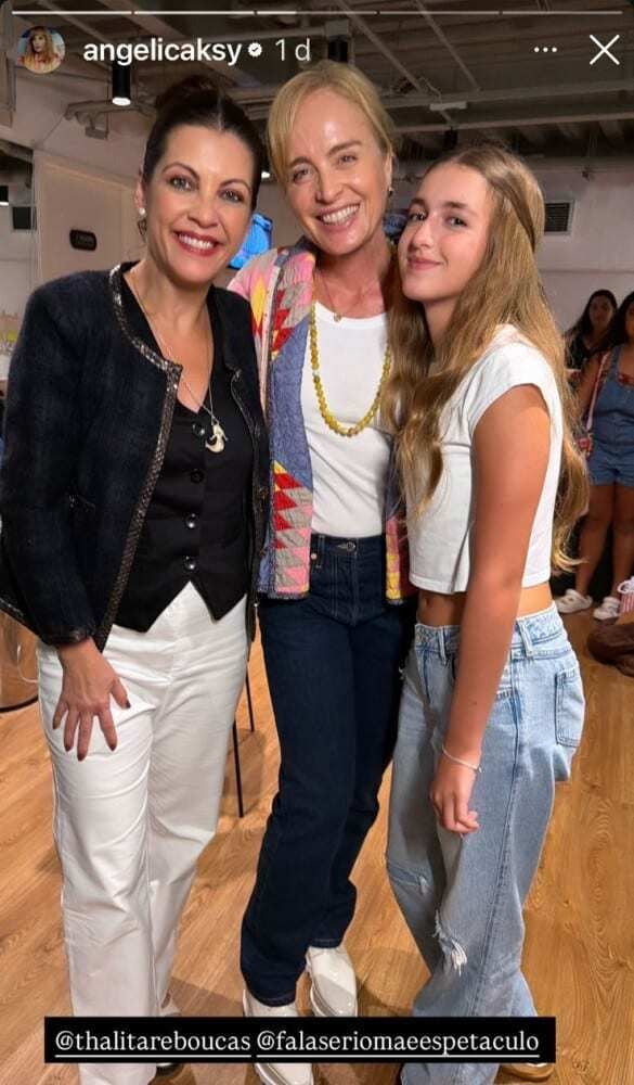 “Que delícia de espetáculo”, elogiou Angélica, em suas redes sociais. Depois da peça, a apresentadora e a filha foram dar uma voltinha pelos bastidores e camarins. Elas aproveitaram o acesso para tietar parte do elenco e até tiraram fotos com a escritora Thalita Rebouças, autora do best seller no qual a produção foi inspirada.