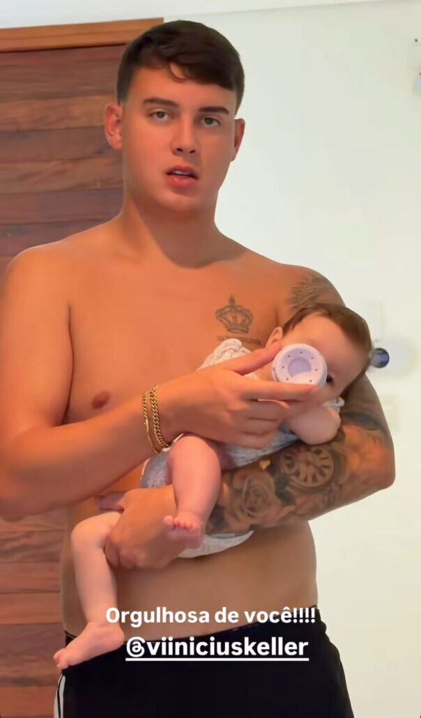 E depois, ela explicou por que decidiu revelar agora que Vinícius é o pai de sua bebê. “Oi gente! Vocês viram ai que eu postei, né? Gente, vocês vivem me perguntando e eu falei para vocês que eu ia falar. Eu postei agora porque estou orgulhosa, estou vendo ele como um bom pai, ele tem sido incrível para a Maria Vitória, a família dele tem sido incrível também para a Maria Vitória”.