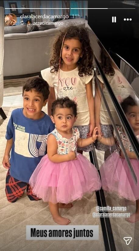 A filha mais nova do cantor Zezé Di Camargo encantou ao surgir em encontrinho especial com o seus sobrinhos, herdeiros de sua irmã, a atriz Camilla Camargo. O famoso é casado com a digital influencer Graciele Lacerda. O casal que está junto há mais de uma década, oficializou a união em 2024.