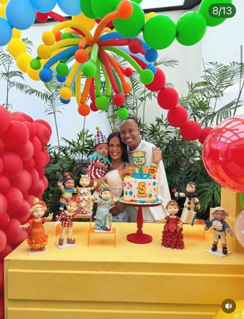 “Bloco do Bento na avenidaaaaa! 5 meses do nosso pequeno folião… Fantasiado de Pierrot, em cima do trio elétrico da nossa vida, comandando o coração da Mamãe e do Papai! Se o carnaval já é alegria… imagina quando a alegria tem nome, sorriso banguela e cheirinho de céu. Nosso bloquinho é de amor, de gratidão e de milagre diário. E o abadá que a gente veste é o da família! Viva o Bento! Viva nosso Bloco!”, legendaram Carol Peixinho e Thiaguinho.