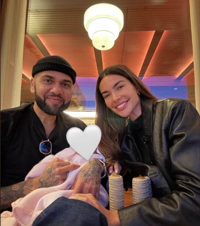 O ex-jogador Daniel Alves surpreendeu ao compartilhar um raro registro com sua filha e esposa. No clique, o famoso surgiu ao com sua herdeira nos braços ao lado de sua esposa em um restaurante. O atleta é casado com a modelo espanhola Joana Sanz. O casal está junto desde 2017. Eles deram as boas-vindas a primogênita em outubro do ano passado.