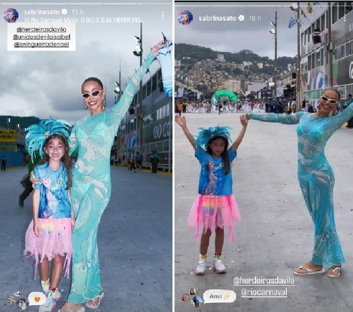 Já Sabrina, atualmente é casada com o ator Nicolas Prattes. A garotinha Zoe mora com o a mãe e o padrasto, mas é sempre vista em muitos momentos na casa do pai. Nesta sexta-feira (20), Sabrina Sato usou seu perfil para mostrar a estreia de sua filha com Duda Nagle na Sapucaí. Zoe desfilou pela escola mirim ligada a Unidos de Vila Isabel. A agremiação infantil é o berço de futuros sambistas, onde a apresentadora ocupa o posto de Rainha de Bateria.