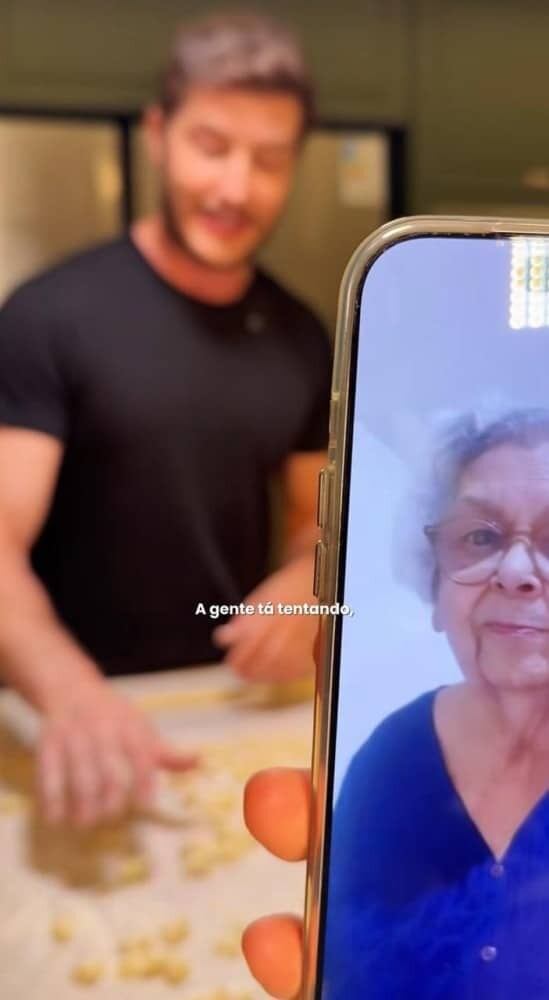 “Vou ensinar para vocês uma receita da minha família que é o nhoque da vovó”, disse Klebber Toledo antes de começar o passo a passo do prato. A receita foi passara pela matriarca por meio de um áudio no celular. Depois, por meio de chamada de vídeo ela conferiu como tudo estava ficando e aprovou o resultado!