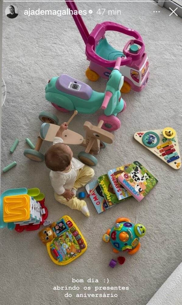 Sese, como a menina foi apelidada pelos fãs, recebeu alguns mimos dos convidados. Na foto é possível ver brinquedinhos variados. Incluindo brinquedos de montar, educativos, mini bicicleta, motoca e até alguns livrinhos com páginas interativas. “Bom dia, abrindo os presentes do aniversário”, legendou a influencer.