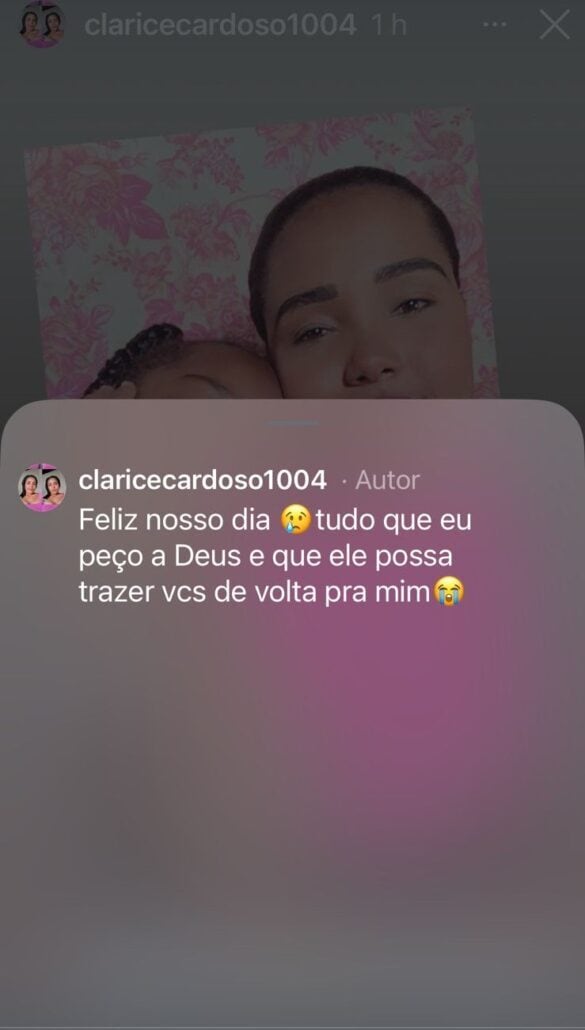 Em suas redes sociais, a mãe das crianças desaparecidas fez um novo desabafo após estas novas revelações do comandante. A mãe Clarice Cardoso compartilhou uma foto ao lado da filha Ágatha Isabelly e falou sobre seu desejo pela volta da menina. “Feliz nosso dia! Tudo que eu peço a Deus é que ele possa trazer vocês de volta pra mim!”, afirmou Clarice.