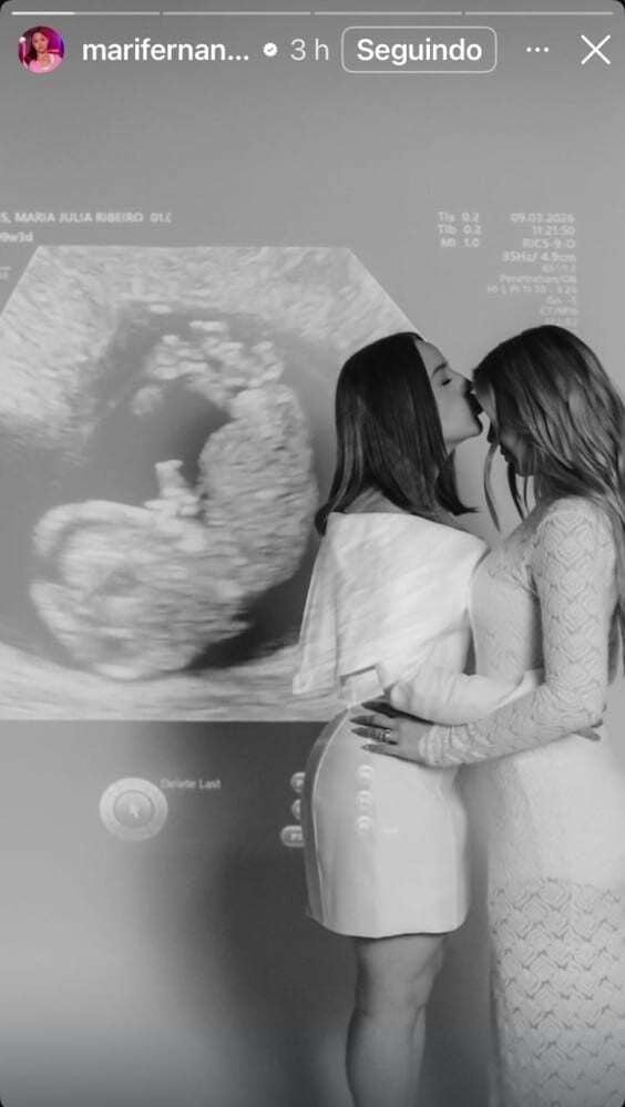 Há alguns dias, a artista fez uma linda homenagem para as mulheres de sua vida. Por enquanto, ela e a esposa ainda não revelaram se esperam um menino ou uma menina. Em uma das imagens usadas no vídeo para anunciar a gestação, Mari Fernandez e Júlia revelam um exame feito com nove semanas e três dias, o que equivale a três meses.
