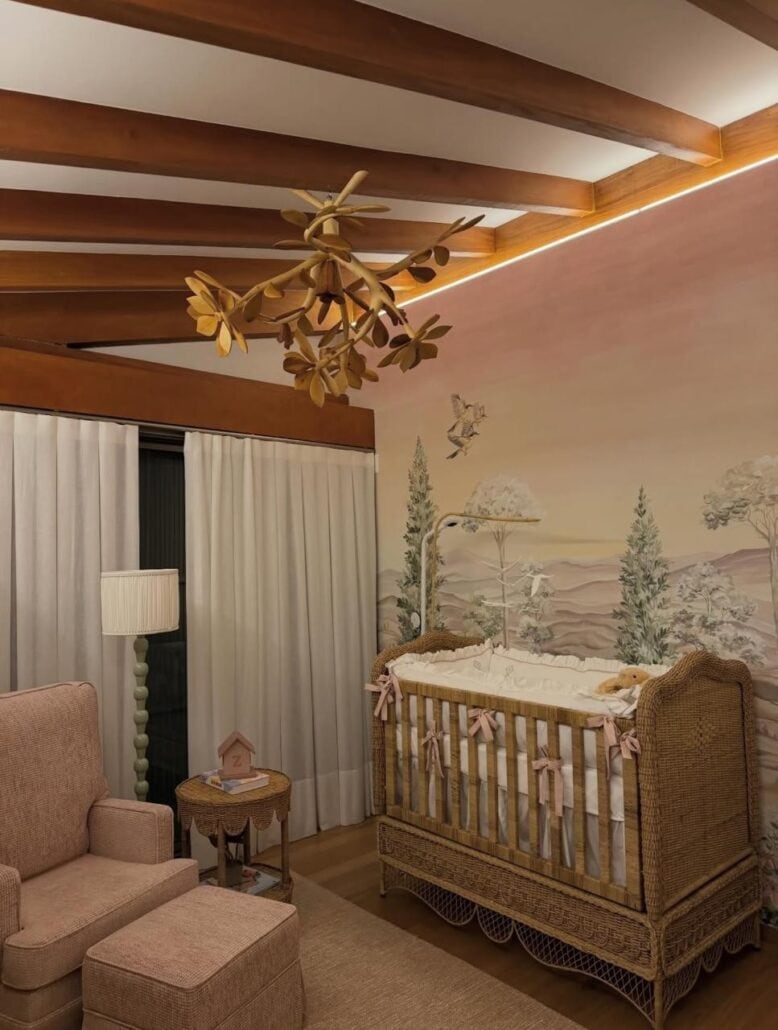 Em seu perfil, o papai vem compartilhando muitos momentos com a primogênita. Nattanzinho até mostrou os detalhes do cômodo que se tornou o mais especial da casa- o quartinho da neném. Uma das paredes recebeu uma pintura à mão de uma floresta. O berço de madeira escolhido pela famosa é cheio de detalhes. Uma poltrona de amamentação, um aparador e um lustre de flores completam a decor do quartinho.