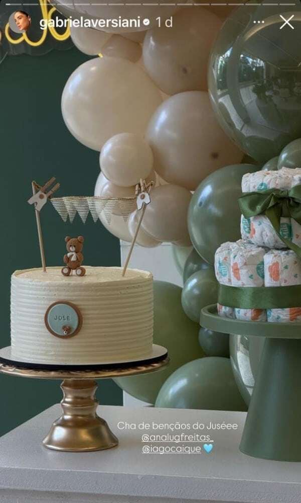 Neste final de semana, a influencer surgiu em um lindo Chá de Bebê. A festa foi decorada em tons de verde e dourado com balões e ursinhos. O bolo foi enfeitado com o nome do bebê e ficou ao lado de um bolo de fraldas. “Chá de bençãos do Juséeee”, legendou a noiva de Murilo Huff.