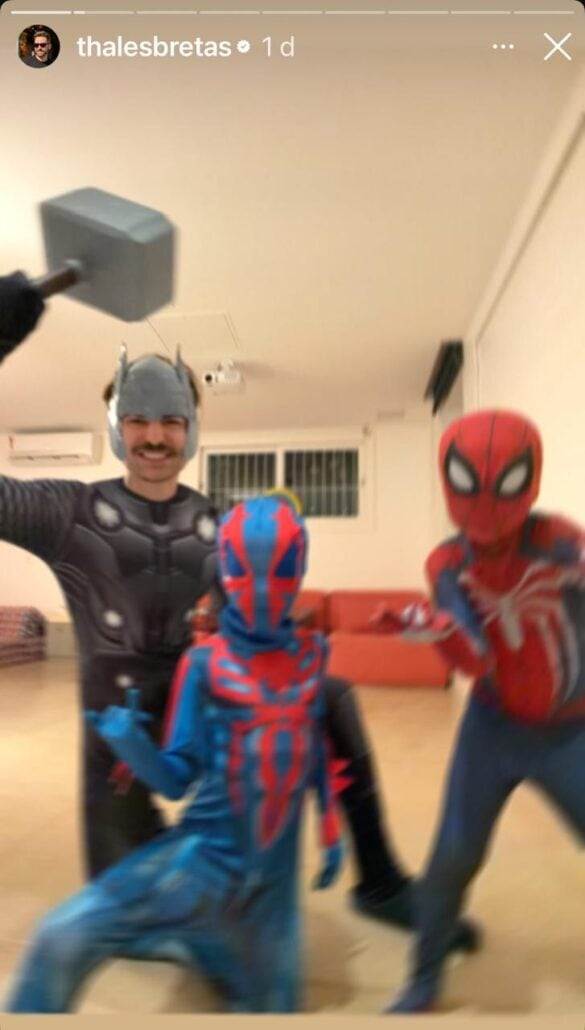 Desde o adeus ao marido, o médico seguiu cuidando dos filhos com o apoio de alguns familiares. Em suas redes sociais, ele mostrou um divertido momento com os pequenos que parecem não terem gostado de sair do clima do carnaval. Entrando na onda da folia, o papai posou junto com eles fantasiado! Cada um escolheu seu herói predileto para a fantasia.