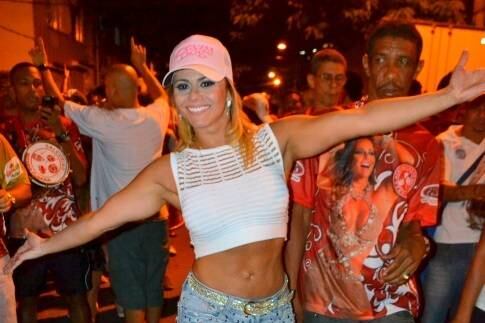 Na noite desta quarta-feira (19), Vivi esteve no último ensaio de rua do Salgueiro