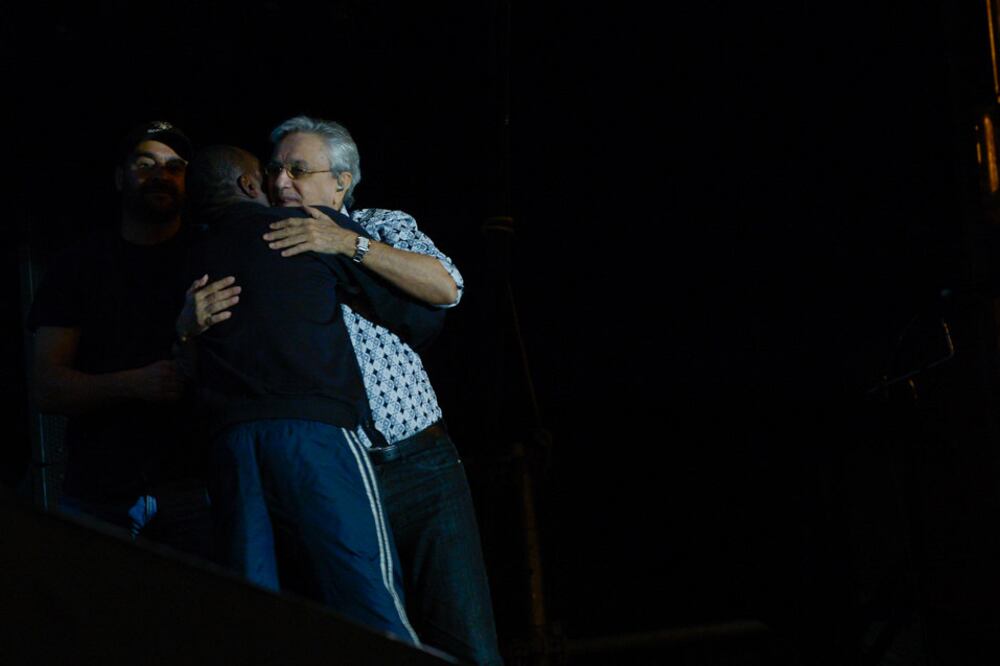 Fã invade palco de Caetano Veloso na Virada Cultural e ganha abraço do cantor