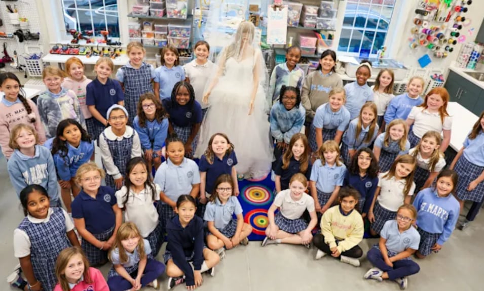 Alunas da terceira série da escola St. Mary’s Episcopal, no Tennessee, Estados Unidos, criaram um vestido de noiva para Taylor Swift em um projeto da disciplina de STEM (Ciência, Tecnologia, Engenharia e Matemática).