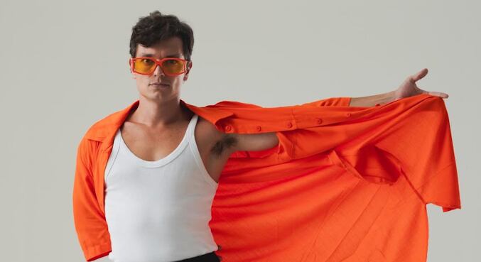 O ator posou com um look laranja e um óculos super diferentão, e foi elogiado pelos amigos e fãs.
