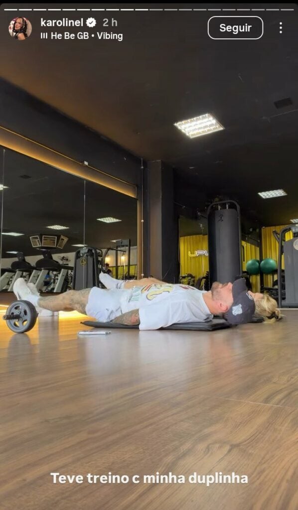 Karoline Lima, de 29 anos, usou esta terça-feira (23) para manter a rotina de exercícios ao lado do namorado, Léo Pereira. O zagueiro do Flamengo, que tem a mesma idade da influenciadora, retomou recentemente o relacionamento com ela. Nos Stories do Instagram, Karoline registrou o momento e comentou: “Teve treino com minha duplinha”.