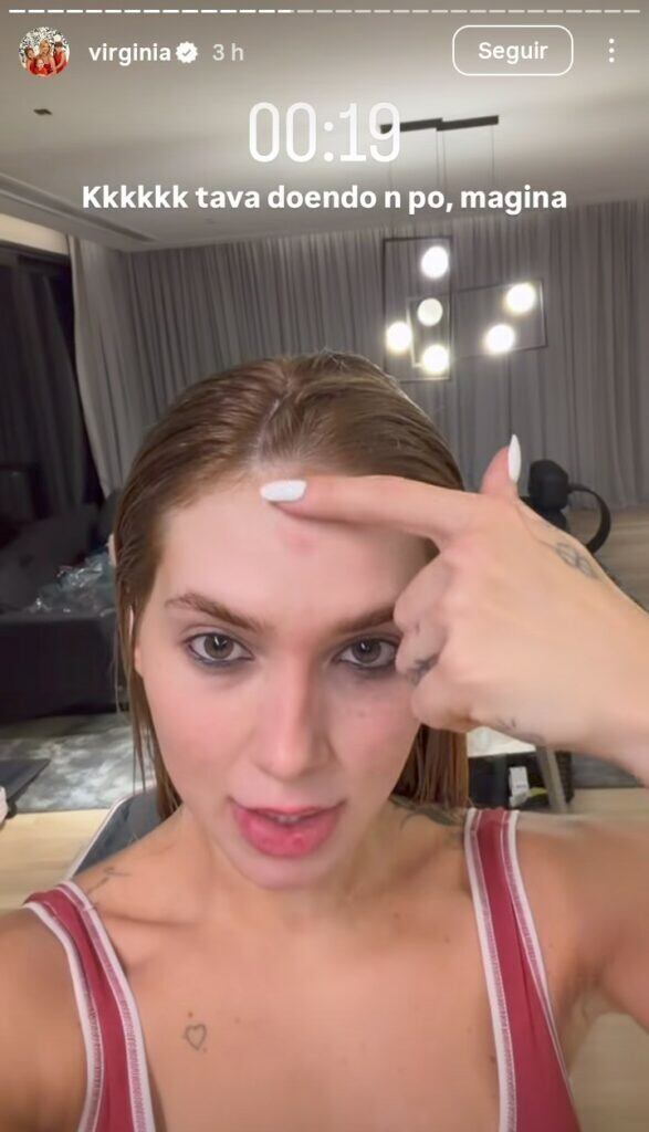 Enquanto estava na casa do namorado, o jogador Vini Jr., no Rio de Janeiro, a loira mostrou o hematoma provocado pela coroa da fantasia. Ao registrar o inchaço na testa, Virginia comentou, de forma bem-humorada, que os acessórios usados no Carnaval acabam exigindo bastante do corpo, destacando o “calombo” deixado pelo adereço, apesar de afirmar que a dor não foi intensa.