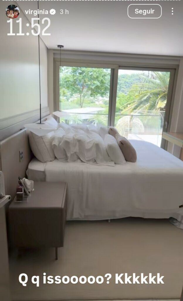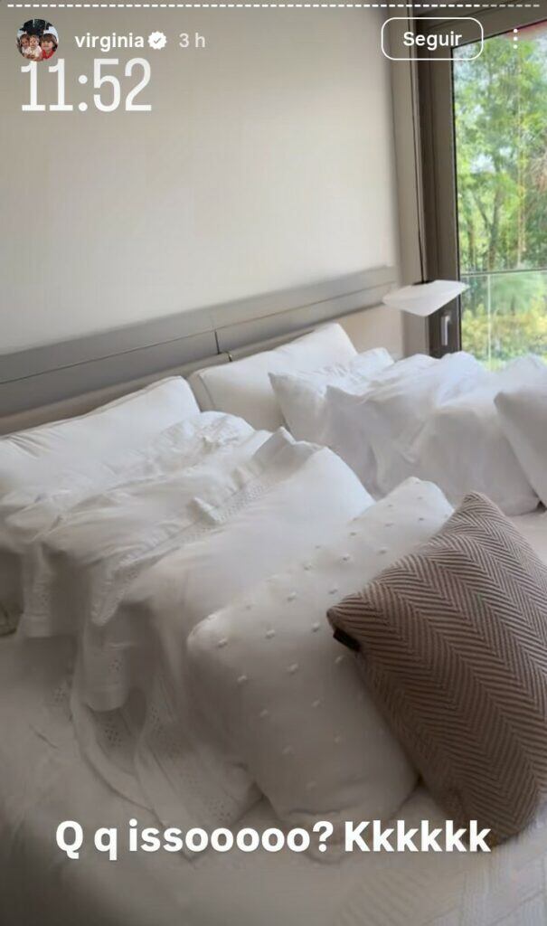 Ao mostrar o cômodo, Virginia comentou, surpresa, a quantidade de travesseiros acumulados no local. Rindo da situação, ela disse que parecia que todos os travesseiros da casa tinham sido deixados ali, já que o quarto não estava em uso, e afirmou não acreditar no que estava vendo: “Olha isso aqui. Esse quarto ninguém está usando, Não tem condição, não”, afirmou a apresentadora.