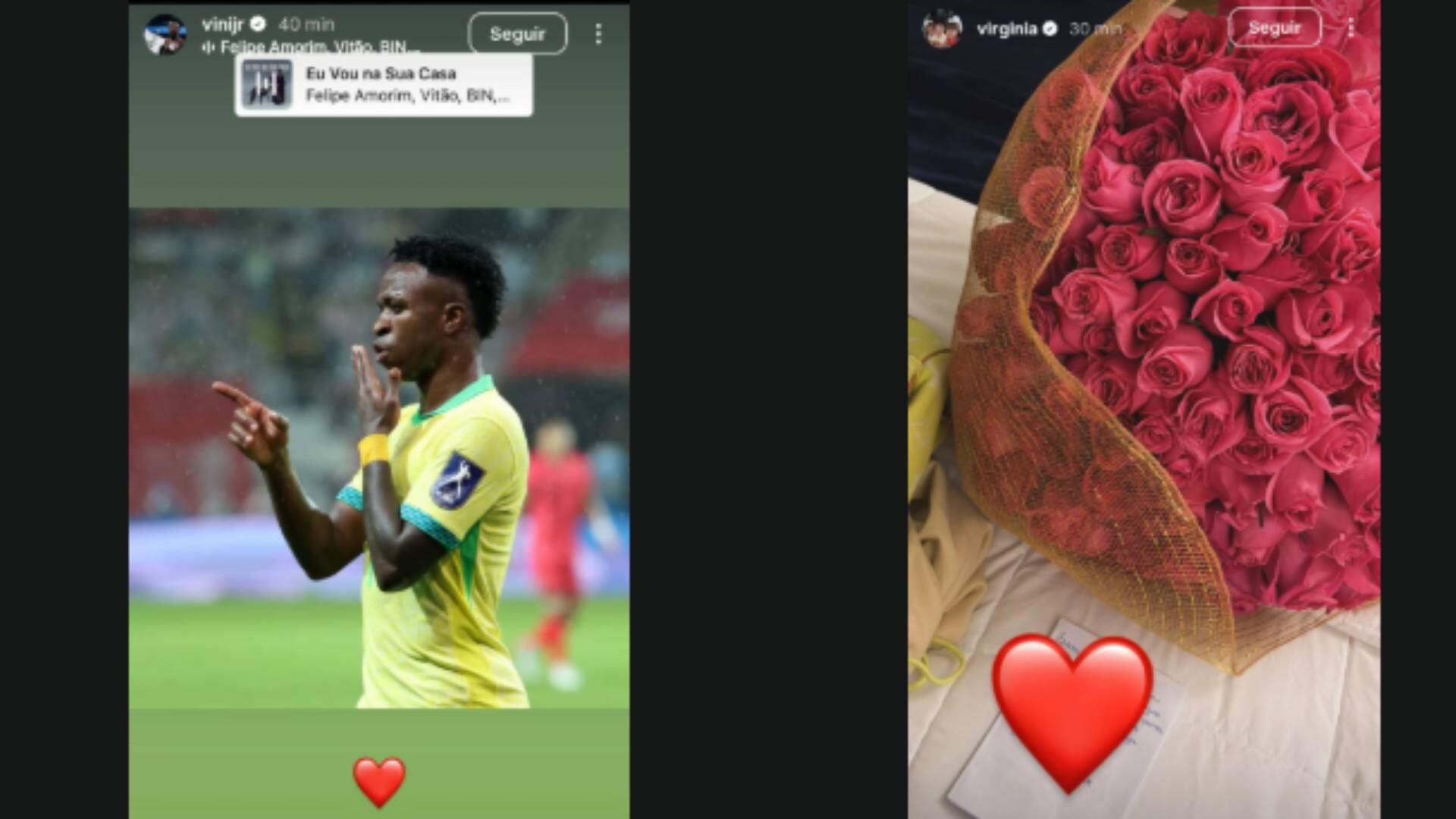 Recado para Virginia? Vini Jr. posta beijo após gol com coração e música romântica