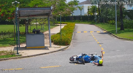 Nas imagens, é possível ver a influenciadora andando na motocicleta de R$ 140 mil que ganhou do noivo, Kaique Cerveny, até que ela se desequilibra e cai.