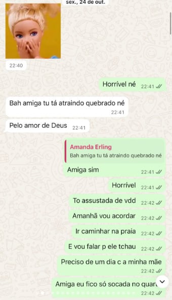 Em resposta nos prints, Dado parece tentar minimizar a situação, alegando que apenas a afastou para se defender. “Eu só te afastei para você não me bater mais”, teria escrito o ator, pedindo “paz” na sequência. A revelação dessas mensagens ocorre em um momento delicado, logo após a confirmação de que Marcela buscou medidas protetivas contra o artista, alegando temer por sua integridade física.