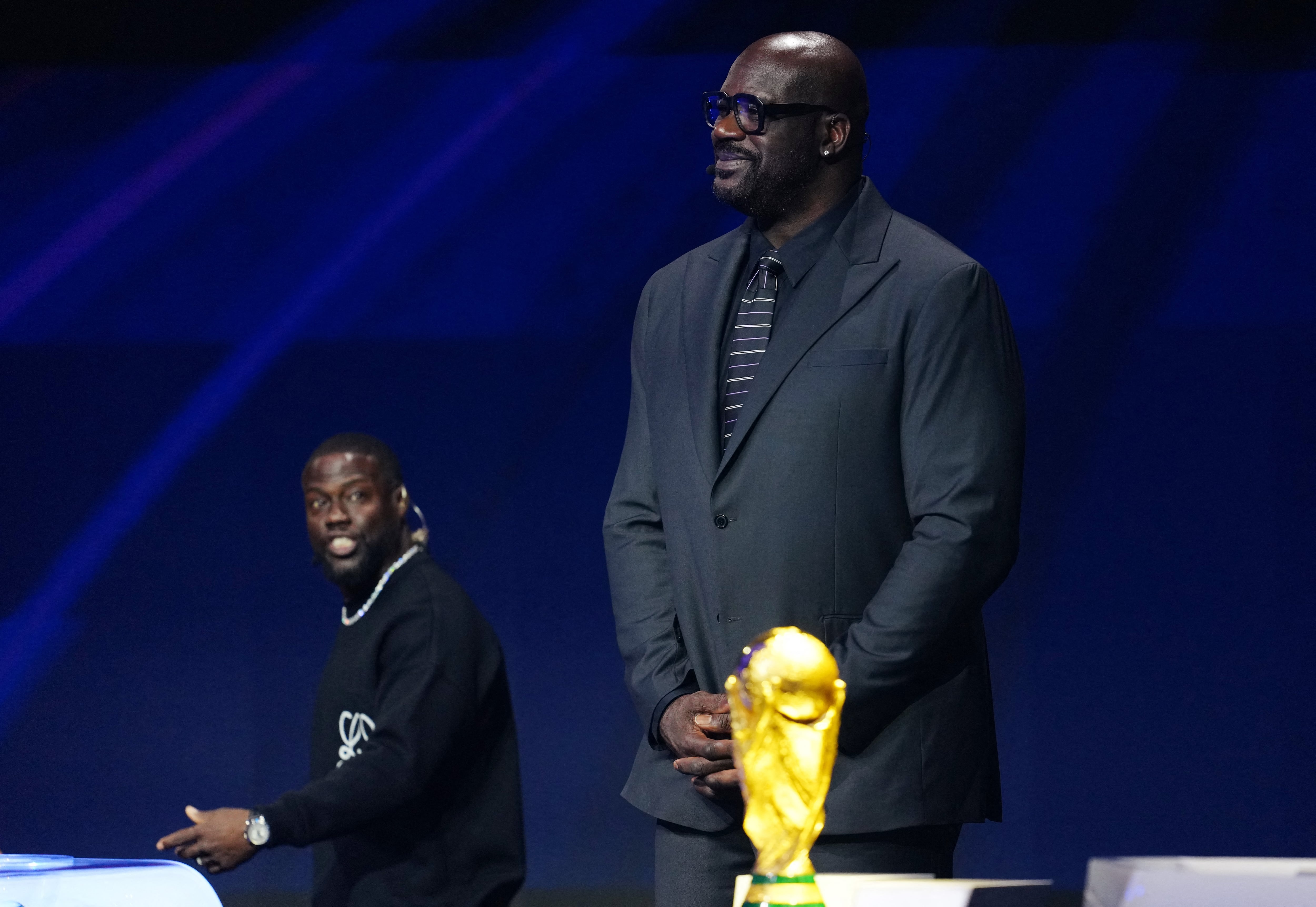Kevin Hart fica ao lado de Shaquille O’Neal e vira piada no sorteio dos grupos da Copa