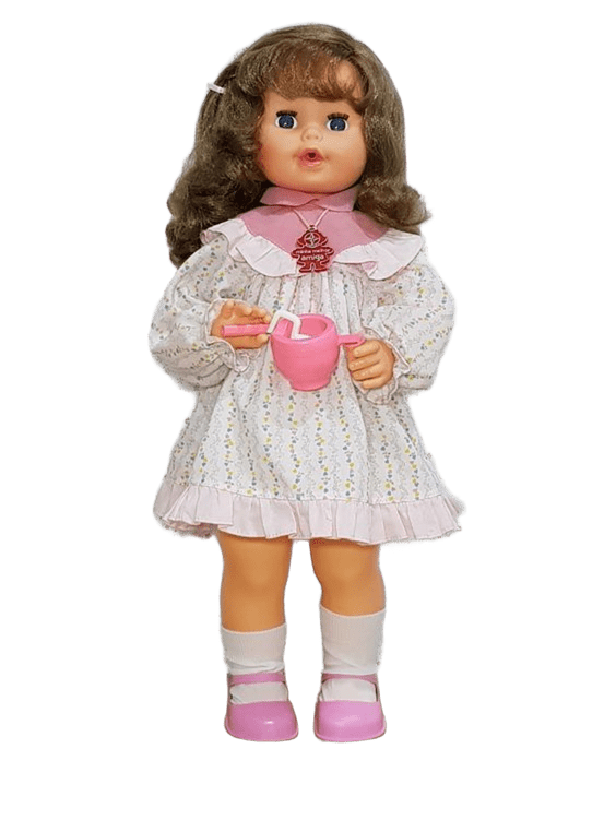 A Boneca Bolinha de Sabão encantava por unir movimento e magia em um só brinquedo. Ela andava, levantava os braços e soprava bolinhas de sabão de verdade. Bastava colocar água e sabão na canequinha para ver o espetáculo acontecer. Com seu jingle marcante e o charme único da época, virou símbolo da alegria e da inocência infantil.