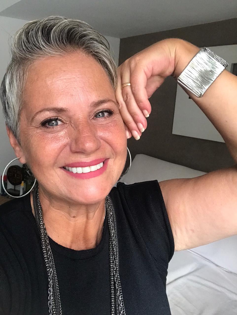 “Trabalho na área de eventos como produtora e mestre de cerimônia, além de atuar como modelo de peles maduras. Hoje, o mercado mudou bastante e há uma grande procura por mulheres com esse perfil, uma forma mais simpática e respeitosa de se referir às mulheres mais velhas.”