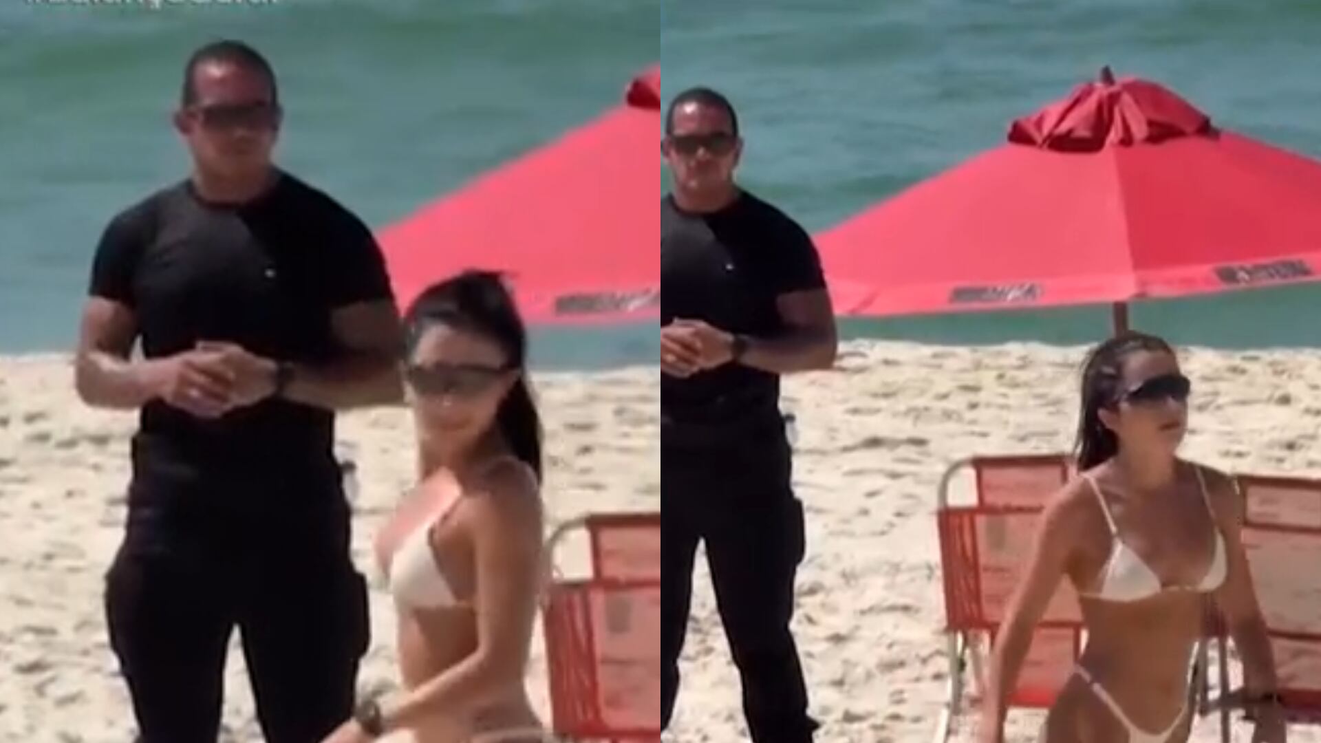 ‘Influenciadora’ chamou atenção ao aparecer acompanhada de escolta enquanto treinava futevôlei no Rio de Janeiro