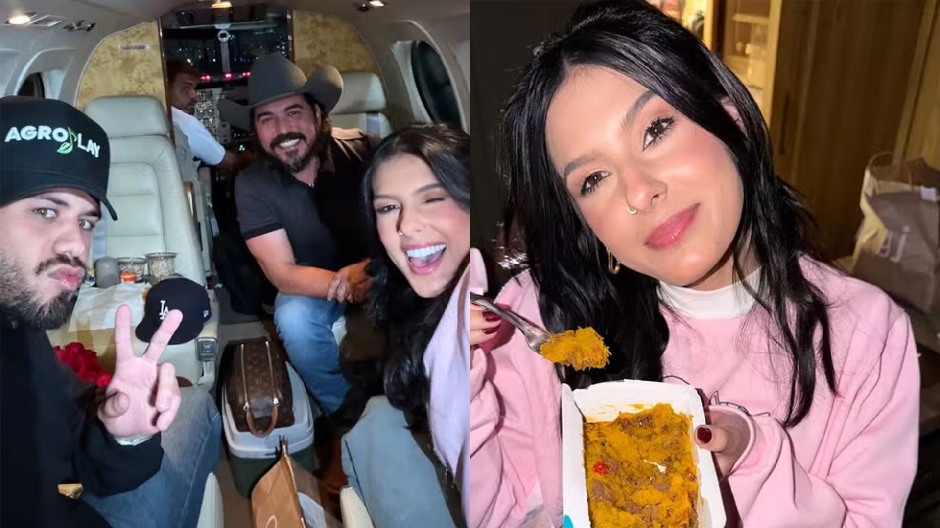 Zé Felipe tira sarro de marmita de Ana Castela em jatinho