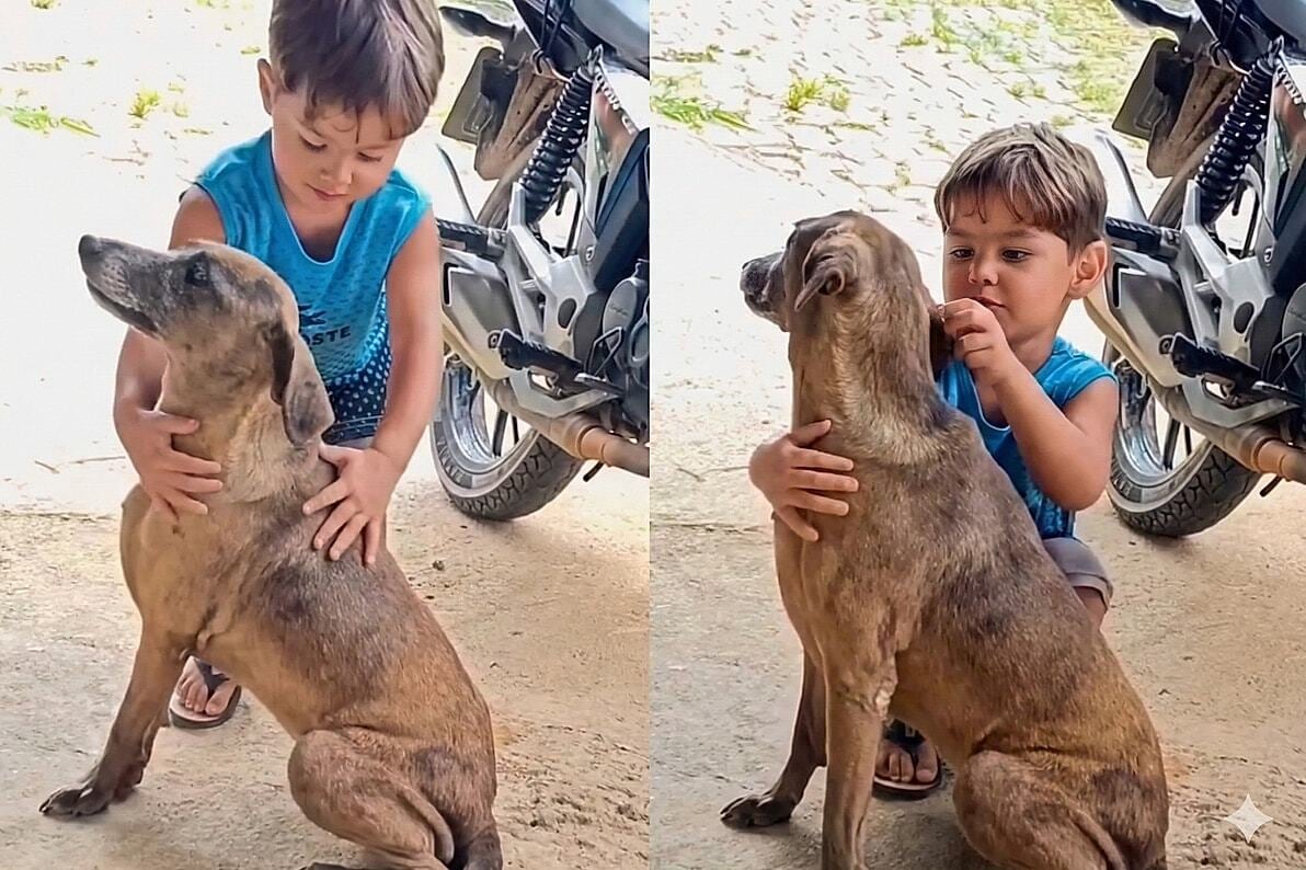 As autoridades foram acionadas durante a manhã pelo proprietário de um imóvel próximo a um cruzamento movimentado, onde o cão estava preso. Quando os bombeiros chegaram ao local, foram surpreendidos pela cena.