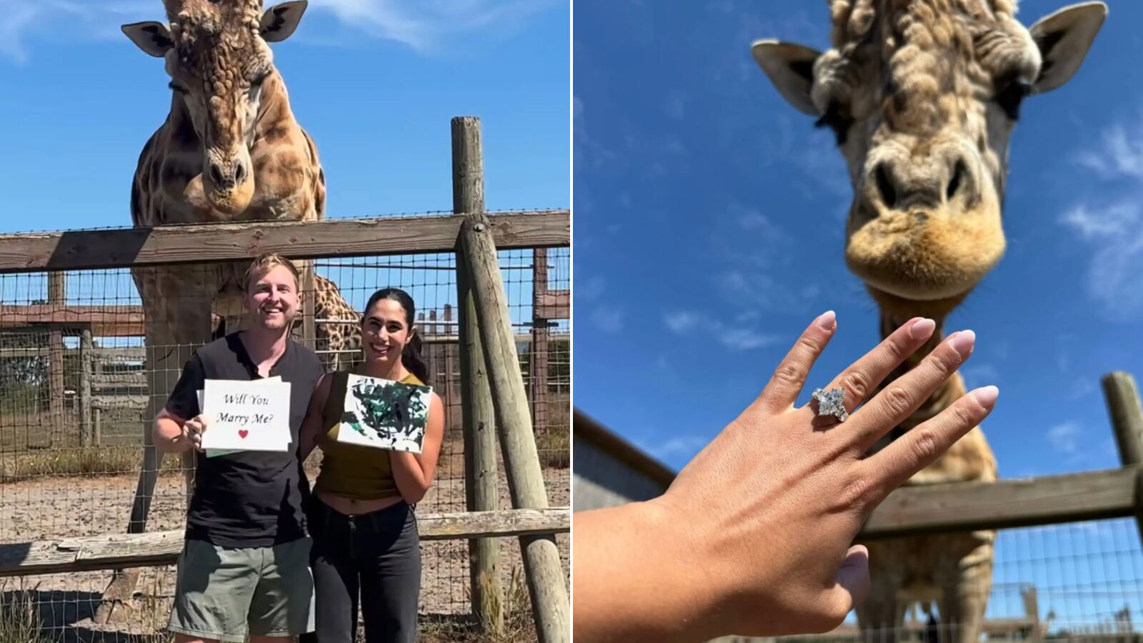 Girafa ‘ajuda’ homem a pedir namorada veterinária em casamento nos EUA; assista