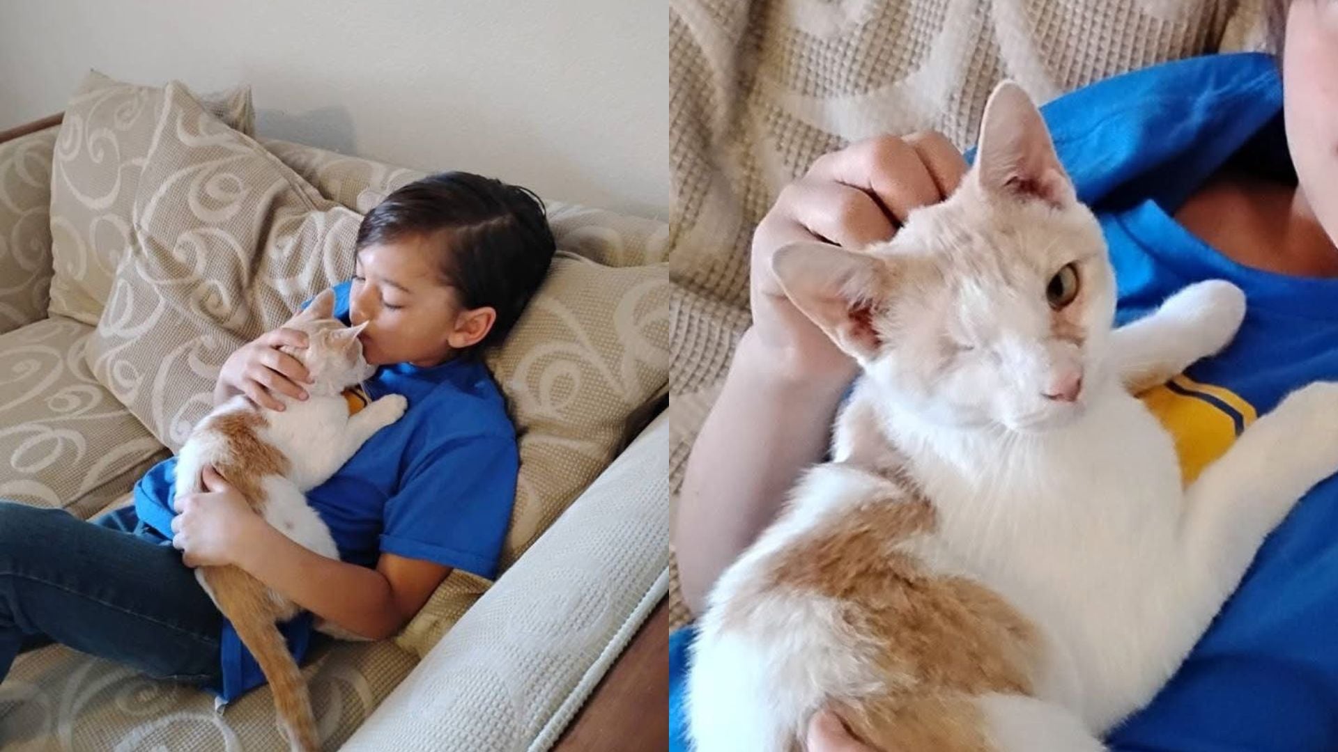 Hoje, Peaches vive com a família de Zayin, junto com outros seis gatos e três cachorros. O vínculo entre o menino e o felino cresceu tanto que ele chama o gato de “melhor amigo”.