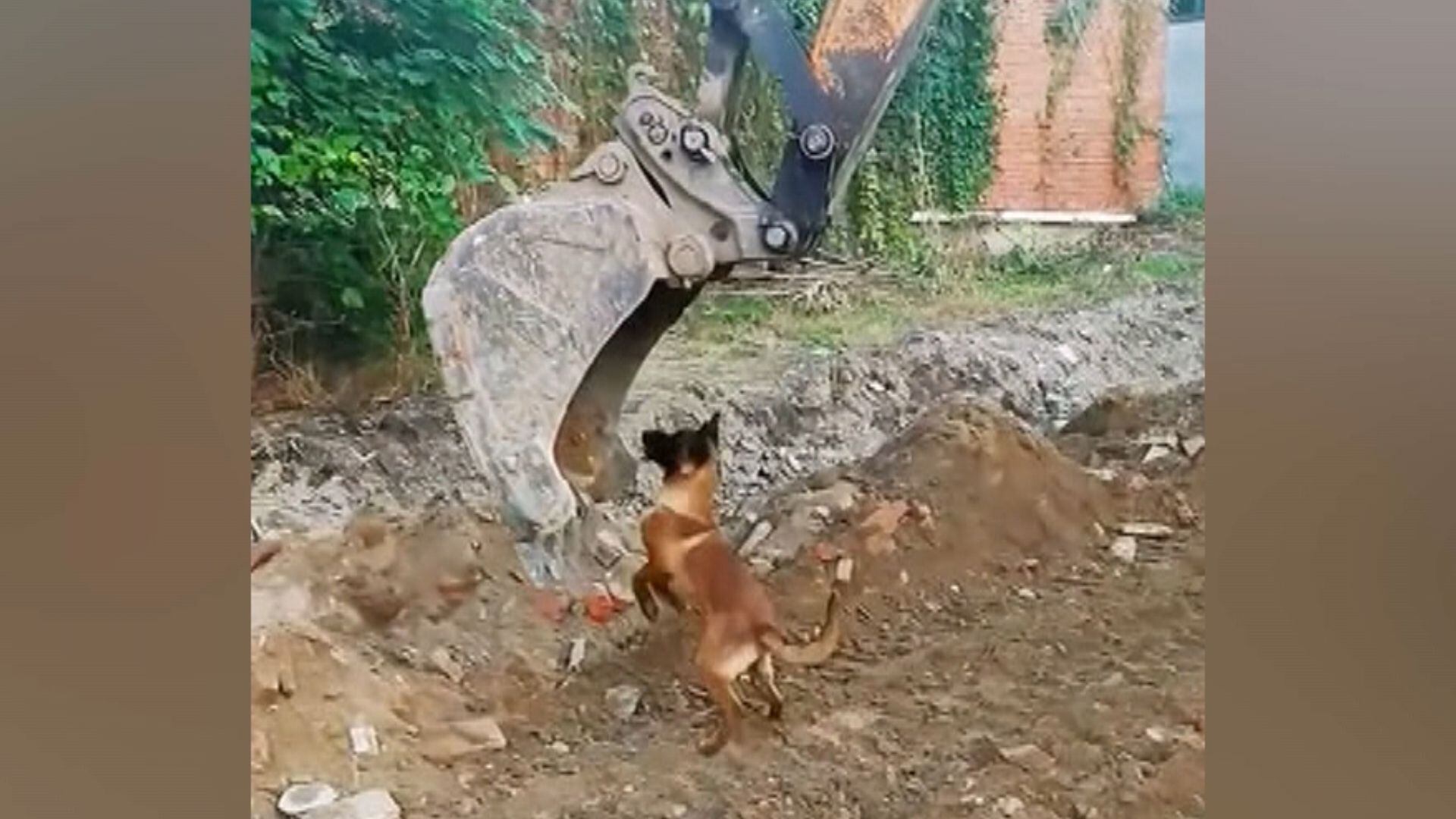 Um simpático pastor belga conquistou as redes ao invadir uma obra próxima de sua casa na província de Hebei, na China, e buscar um amigo um tanto incomum para brincar. Sem sentir medo algum, o animal foi atrás da retroescavadeira que estava no terreno e começou a correr atrás da caçamba do maquinário.
