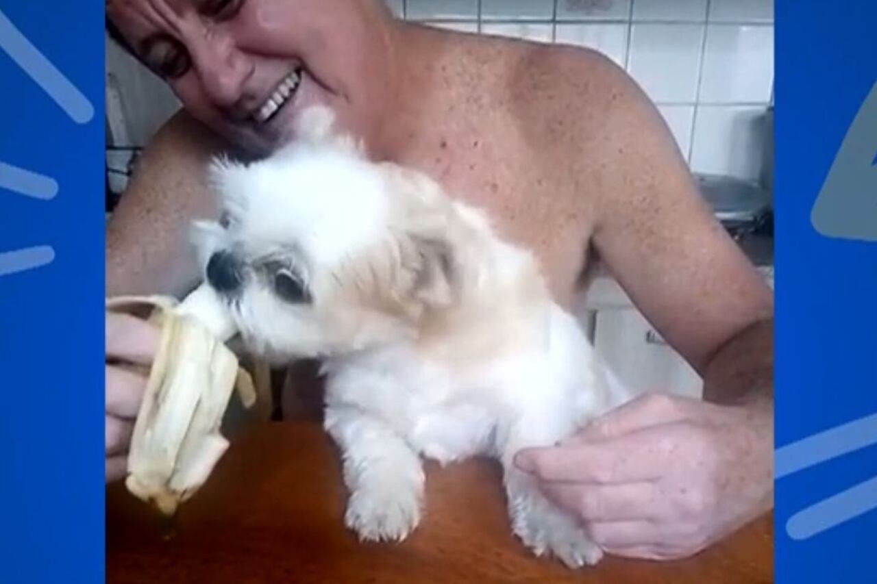 Cãozinho diverte tutores ao devorar uma banana inteira em poucos segundos; assista