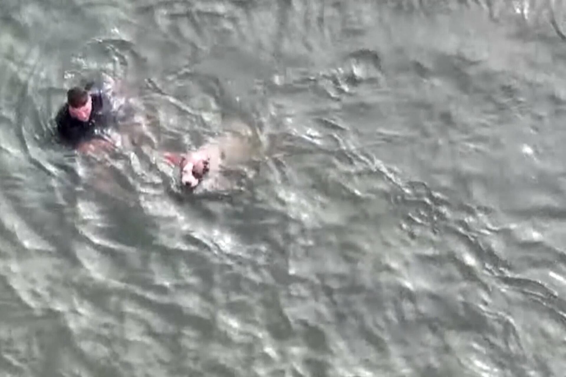 Imagens registram resgate impressionante de cãozinho após queda em canal nos Estados Unidos