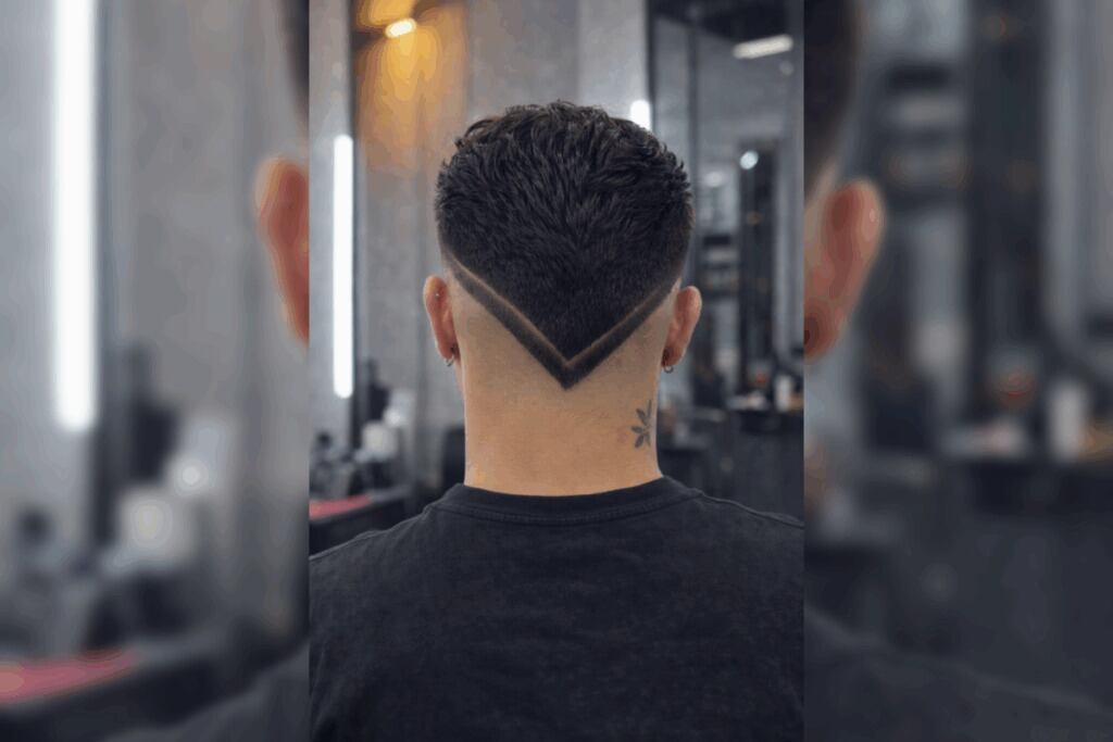 O famoso “V atrás” virou assinatura para muitos homens. Esse detalhe no acabamento da nuca valoriza o corte e deixa o visual mais estiloso e diferenciado. Ele aparece tanto em cortes mais ousados quanto nos mais clássicos, trazendo um toque de personalidade que faz toda a diferença no resultado.