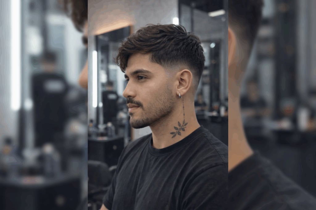 O moicano com fade é, sem dúvida, um dos queridinhos dos homens. Moderno e cheio de personalidade, ele combina o topo mais destacado com laterais em degradê, criando um visual marcante e sofisticado. É um corte muito escolhido por quem gosta de ousar, mas ainda manter um acabamento limpo e atual.