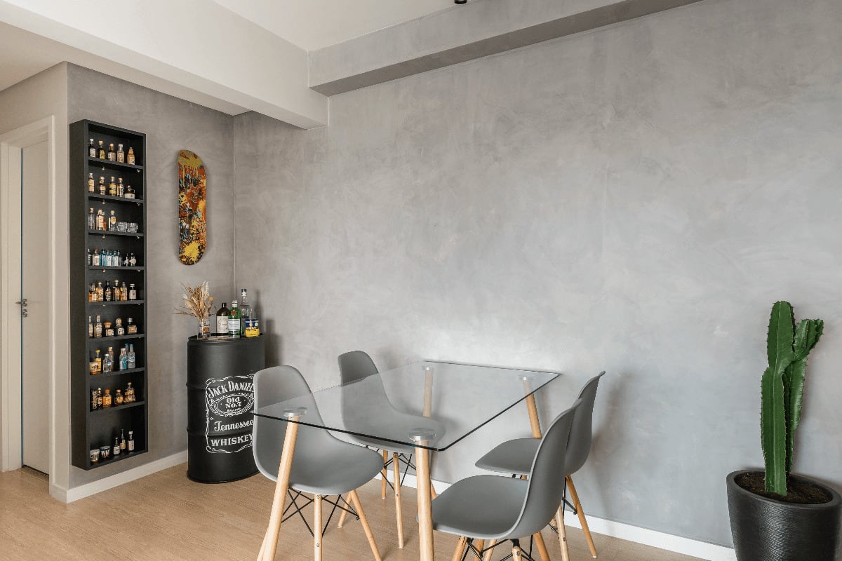 Quando o morador é colecionador, transformar essa paixão em parte da decoração é um gesto de autenticidade. Miniaturas, souvenirs de viagens ou garrafas especiais ganham destaque quando dispostos de maneira estratégica, seja em uma estante lateral, em nichos planejados ou em uma parede dedicada. Essas pequenas curadorias trazem vitalidade aos ambientes e despertam a curiosidade de quem visita, sem comprometer a harmonia visual.
