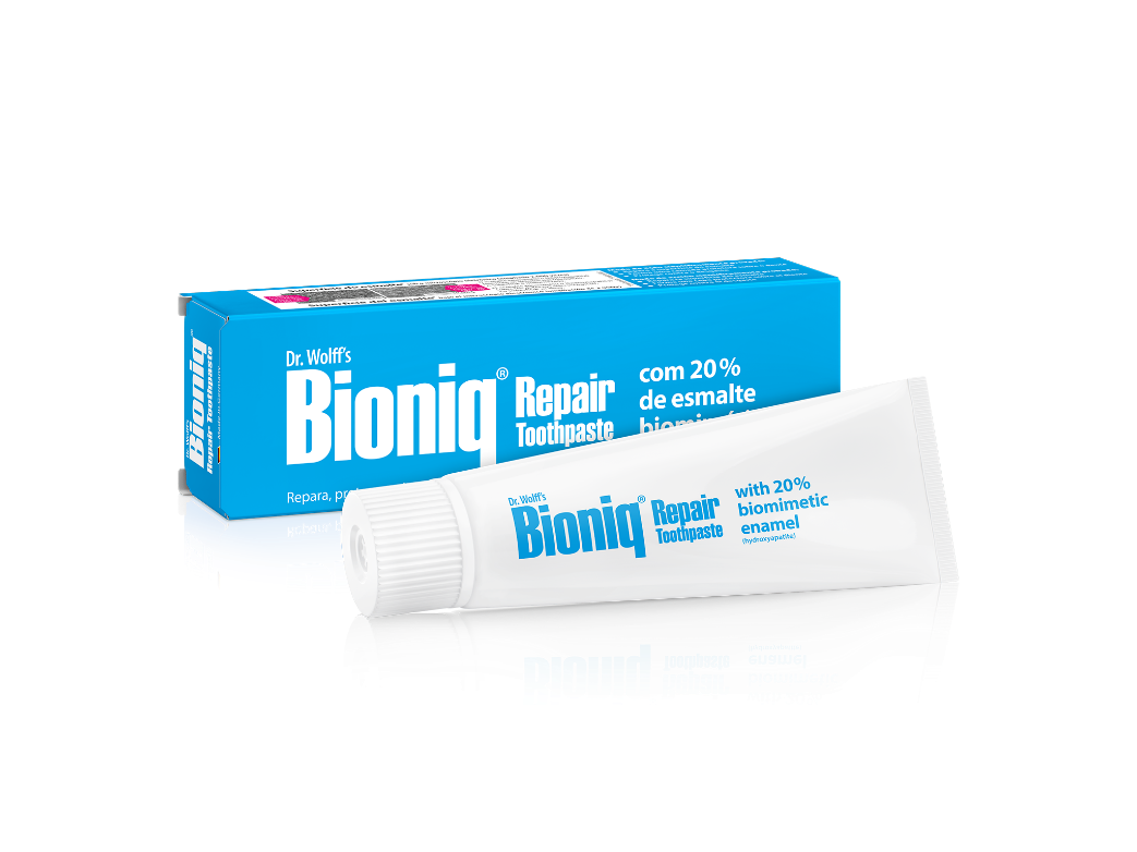 Foi assim que surgiu o Bioniq® Repair, um creme dental formulado com 20% de hidroxiapatita pura, uma das concentrações mais altas do mercado, princípio ativo que reproduz a estrutura natural do esmalte e contribui para sua reparação desde a primeira escovação.