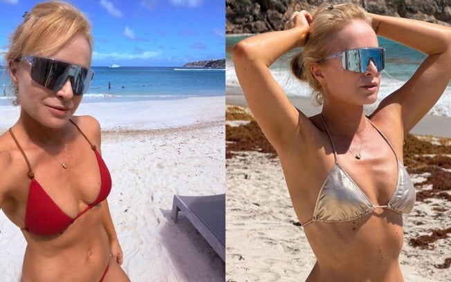 Para os dias de sol e mar, Angélica elegeu um biquíni prateado, que foi complementado por óculos espelhados, conferindo um estilo moderno e descolado ao seu visual. Em outro registro, a apresentadora surgiu com um conjunto em tom de terracota, que realçou seu bronzeado e evidenciou um abdômen sarado, demonstrando o cuidado com a saúde e o bem-estar.