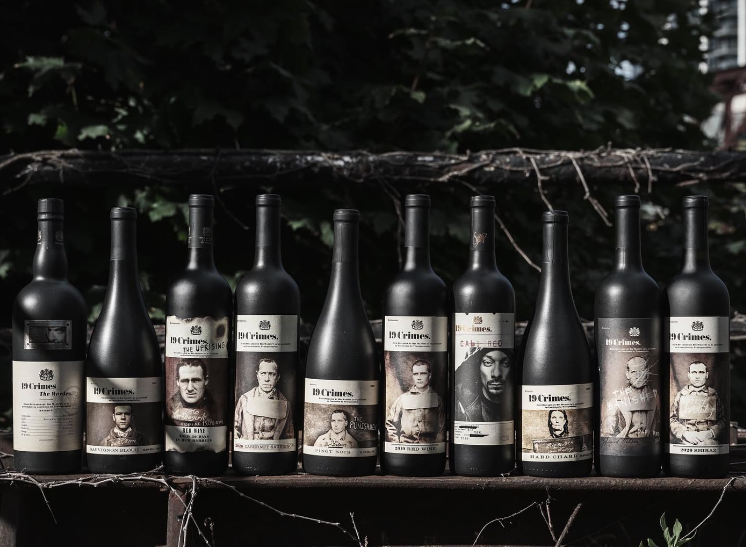 Os rótulos da 19 Crimes trouxeram uma mistura audaciosa de história real, tecnologia de ponta e uma boa dose de espírito rebelde. O projeto se inspirou nas colônias penais da Austrália e em um punhado de criminosos exilados para atingir o estrelato global, com a ajuda inesperada de um ícone do hip-hop.