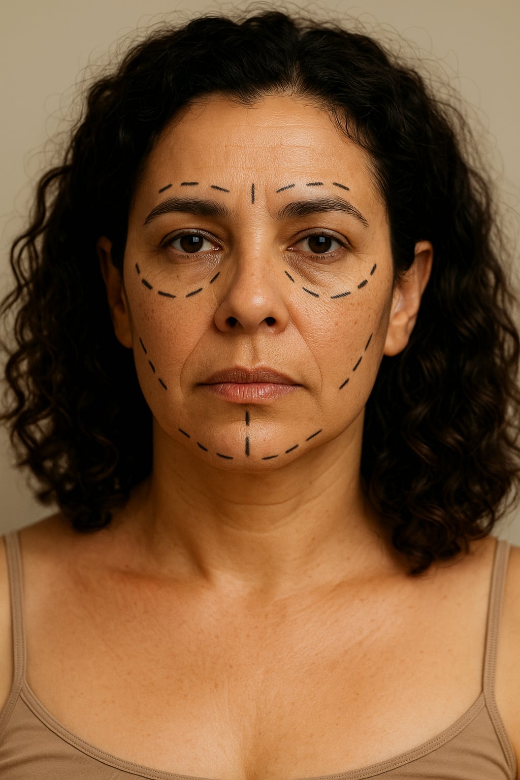A Face, por estar mais exposta ao sol, à poluição e ao estresse, tende a manifestar rugas finas, perda de elasticidade e reabsorção óssea mais cedo. Para tratá-la, as tecnologias indicadas são: ultrassom microfocado, lasers, bioestimuladores de colágeno e neuromoduladores, além da Medicina Dermatológica Regenerativa.