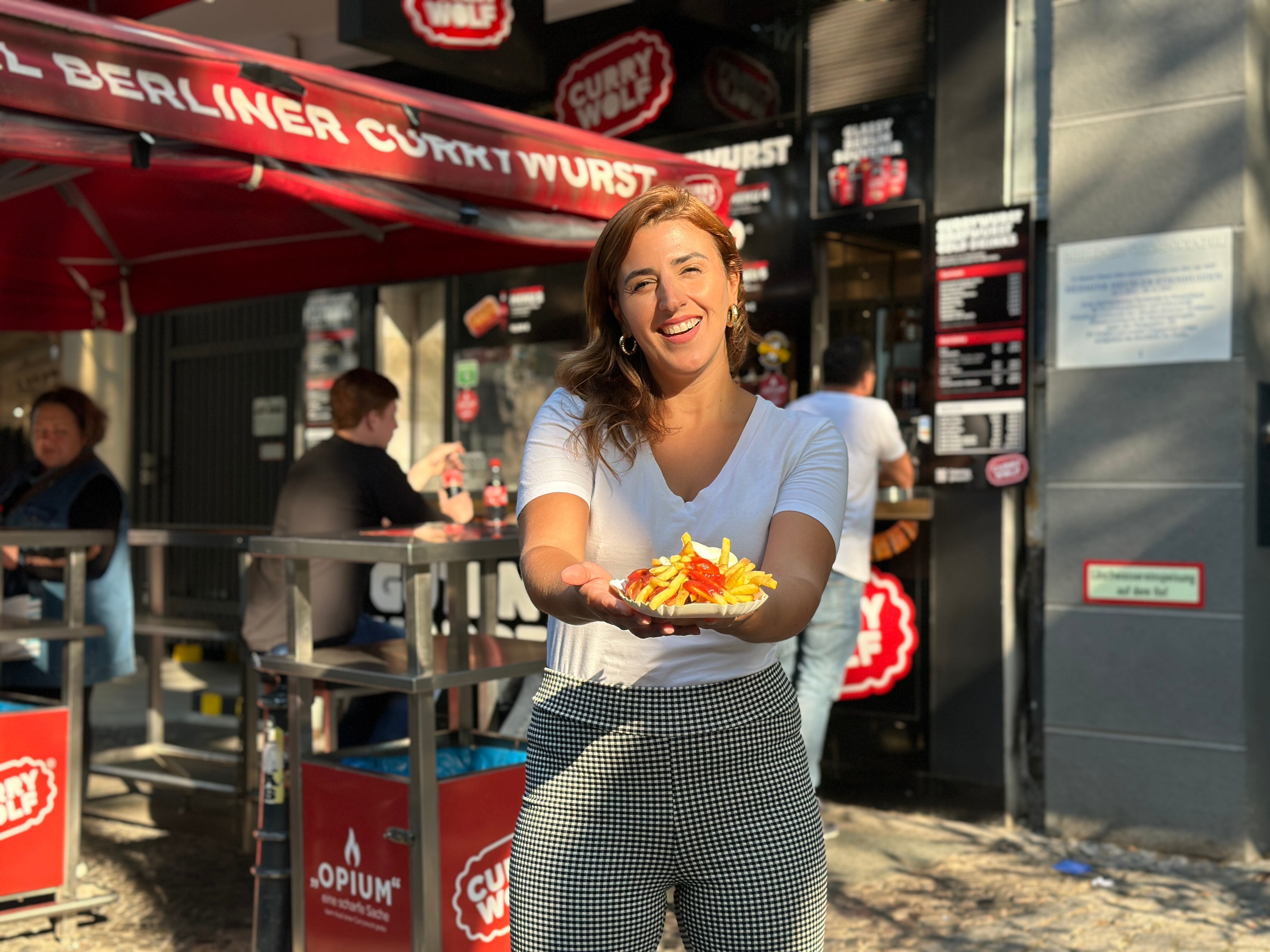 Para o lanche da tarde, nada melhor que a tradicional Currywurst. Fui ao Curry Wolf Brandenburger e conheci o proprietário, Mathias Wolf. Com diversas unidades em Berlim, o Curry Wolf é considerado o melhor da cidade.