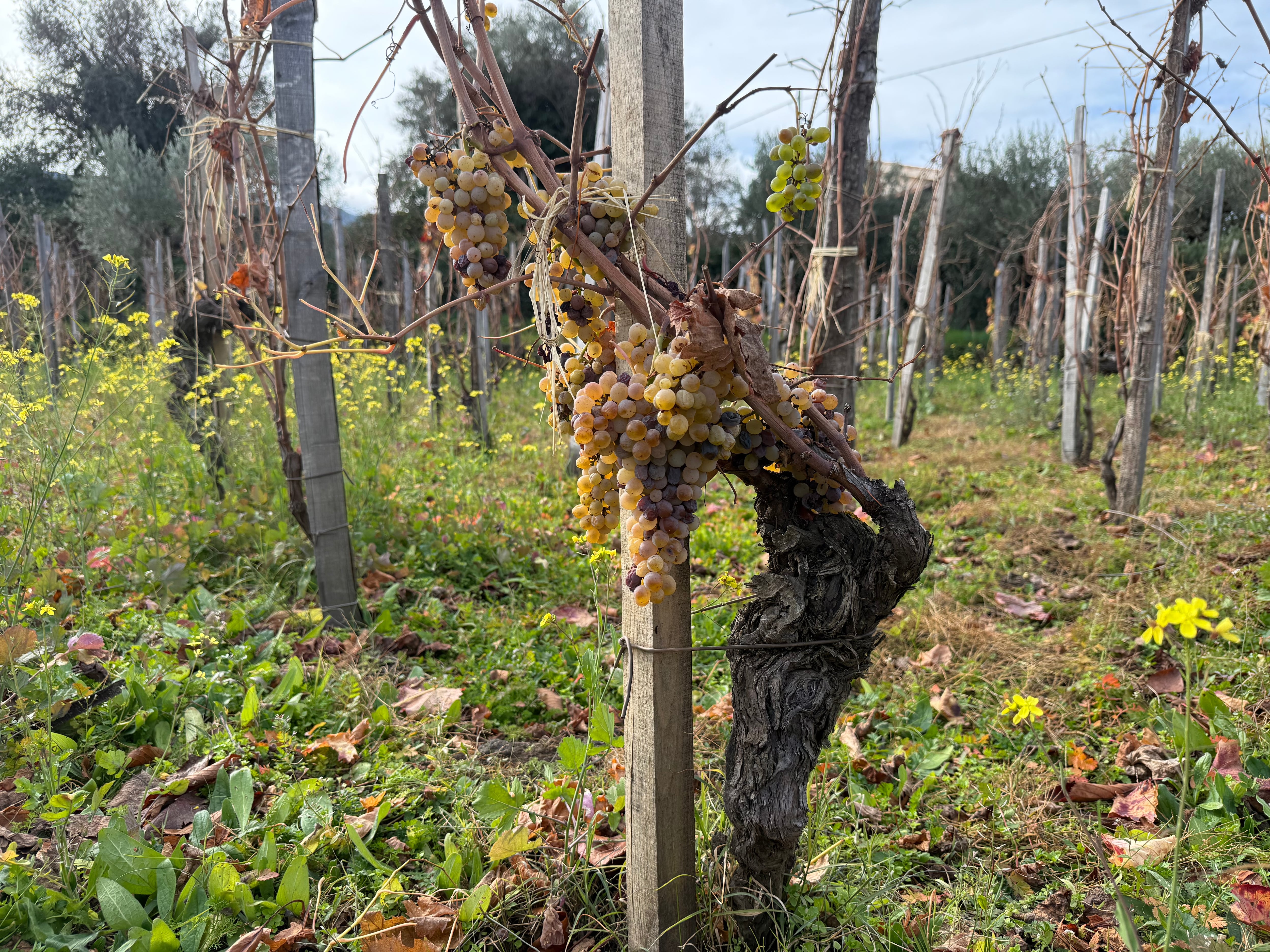 Além disso, o alberello permite que cada planta encontre seu próprio equilíbrio hídrico e nutricional em solos vulcânicos extremamente drenantes. O resultado são rendimentos naturalmente baixos, cachos pequenos e uma concentração que não vem da extração, mas da própria fisiologia da videira.