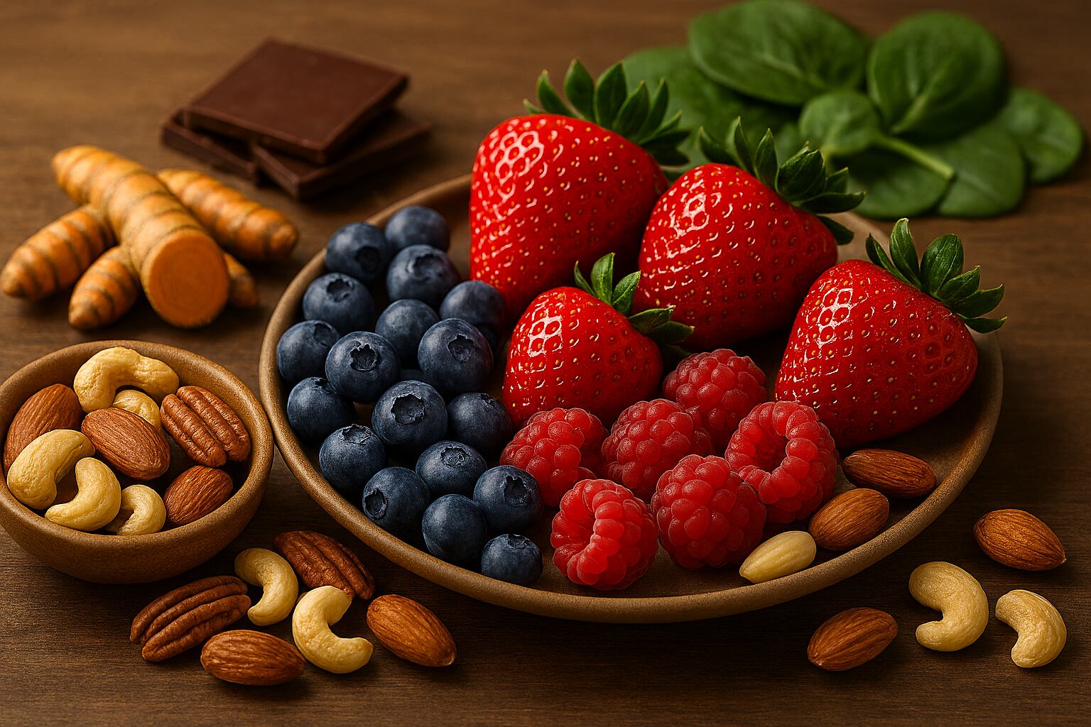 Conversamos com o nutrólogo Dr. Ronan Araújo, que explicou de forma simples: os antioxidantes ajudam a preservar a função celular, melhoram o uso de energia e aumentam a queima de gordura corporal. Ele recomenda alimentos como frutas vermelhas (morango, amora, framboesa, mirtilo), uvas roxas, chá verde, cacau amargo (acima de 70%), açafrão da terra, tomate, vegetais verdes escuros como espinafre, couve e brócolis, além do azeite de oliva extra virgem — que deve ser usado com moderação.