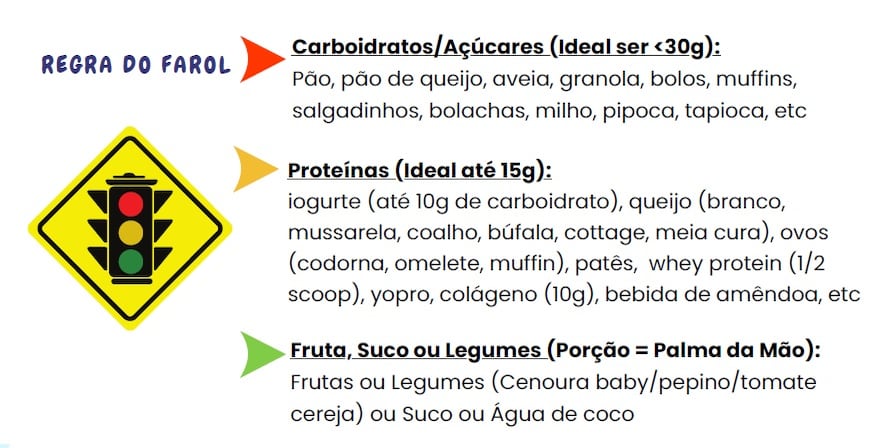 Para equilibrar os grupos alimentares, Melina ensina a “regra do farol”: incluir uma fonte de proteína, uma de vitaminas e minerais e um carboidrato com fibras.