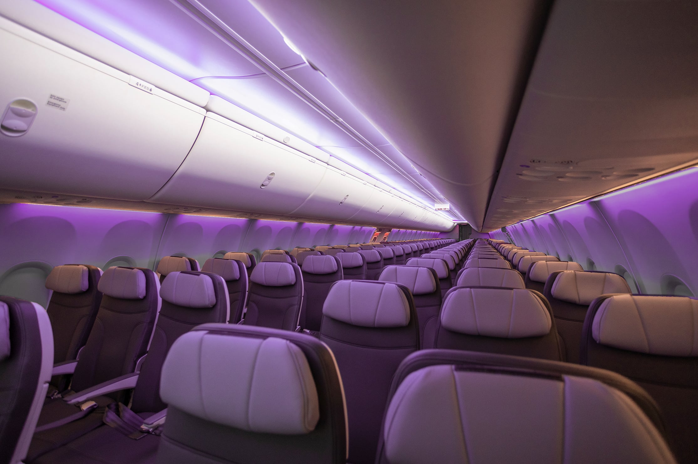 São 185 assentos, e a companhia bloqueia algumas poltronas em rotas longas para dar mais conforto ao voo.