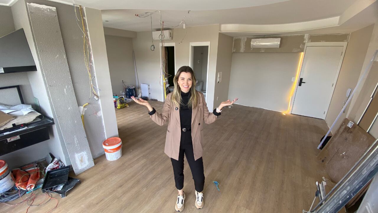 Entre tours de apartamentos reformados e tantas soluções criativas que conheceu em casas pelo Brasil, Gaby se viu perdida quando chegou o momento de reformar o seu próprio apartamento: “Às vezes muita referência pode mais atrapalhar do que ajudar, na verdade”, relembra Gaby, que recebeu o Vivendo em Studio durante a obra do seu apartamento em São Paulo.