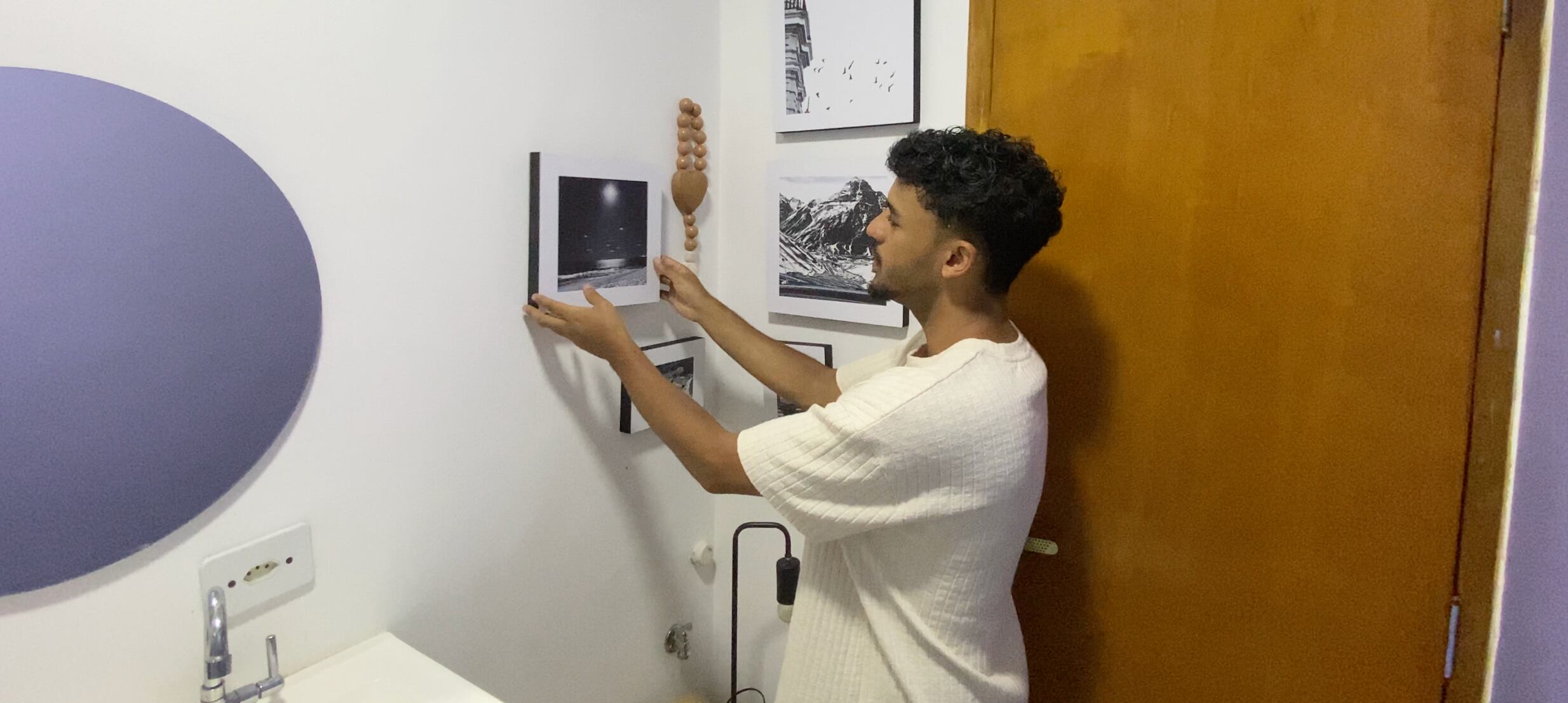 Tem abajur no banheiro, sim! Foto na cozinha, também! Como transformei a vibe do meu apartamento alugado usando a fotografia e a iluminação.